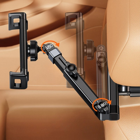 Questo supporto per telefono e tablet per auto offre una rotazione a 360° per un angolo di visione ottimale. Il suo braccio estensibile consente di regolare la distanza secondo le tue preferenze. Facile da installare senza attrezzi, si adatta alla maggior parte dei poggiatesta e dispositivi.